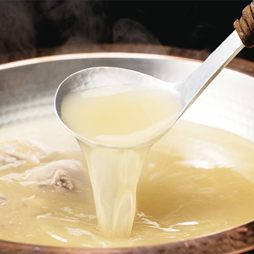 博多・中洲に本店を構え、大阪・東京にも店舗展開する「水たき料亭 博多華味鳥」の吟味されたスープと素材をご家庭でお楽しみいただけます。水たき料亭オリジナルのぽん酢と一緒にご賞味ください。