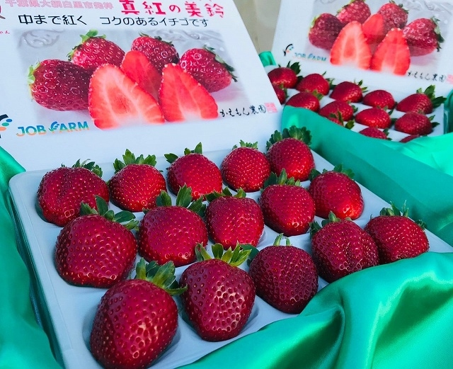 生産者の高橋さんは、市の特産品苺【真紅の美鈴】(しんくのみすず)のほか、酒米【五百万石】を無農薬栽培しています。【真紅の美鈴】は、市内でも生産者が少なく、手に入りにくい希少価値の高い苺です。市内の限られた生産者として、無農薬栽培で培った技術を活かし、他の品種に負けない個性ある美味しい苺づくりを心掛けています。 -
