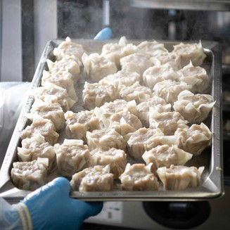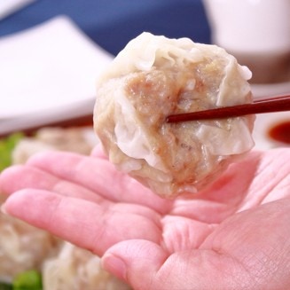 実際の商品を手に取ったお客様が声を上げて驚くほど、ボリュームたっぷりビッグサイズの大粒肉焼売。まず大きさに目を奪われますが、大きさだけではなく味と品質にもこだわっています。お肉はもちろん元気豚。玉ねぎは国産に限定し、直営工場の熟練スタッフがひとつひとつ手包みで丁寧に仕上げた焼売は、ジューシーで旨みがたっぷり!そしてやわらか。お肉がしっかりと詰まっているので、大人でも2~3個で満足できるボリュームです。 -