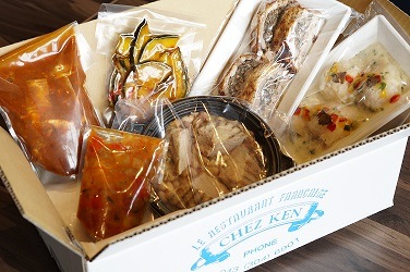 HVC軽井沢&VIALAの統括総料理長藤田の考案したメニューを 千葉のフレンチレストラン【シェ・ケン】にて調理し、 さまざまなロケーションでフレンチを楽しめる「グルメ宅配便」をご用意しました。 本格的なフレンチの味をお楽しみください。 -