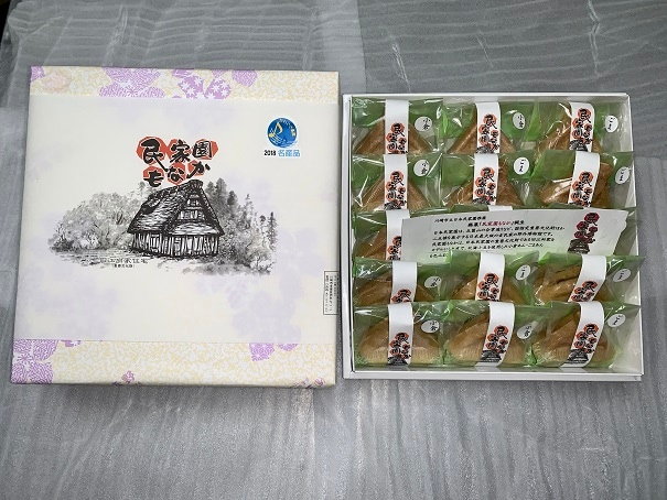 川崎市立日本民家園の重要文化財である旧江向家をモデルにした皮で北海小豆を使用した小倉あん・ごまあんを包んだ最中です。【15個入り】