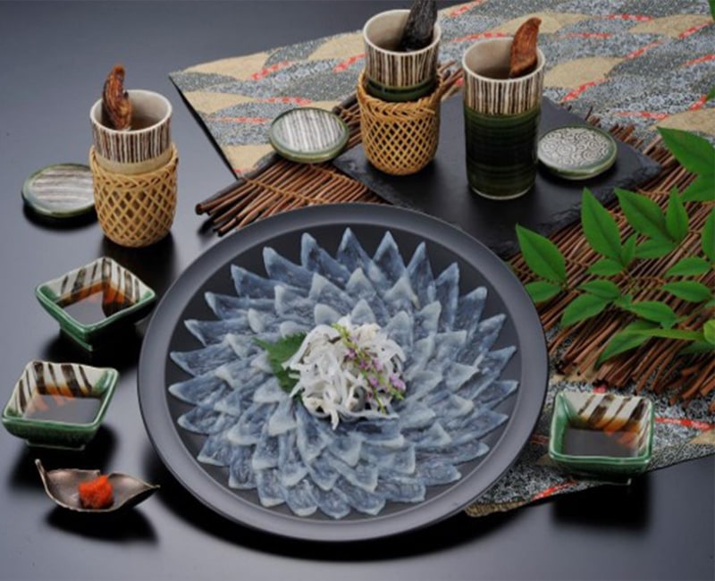 国産のトラフグを使用し、熟練の職人の手によって一切れずつ丁寧に盛り付けられたとらふく刺身は、目で、舌で楽しめる芸術的な逸品。特製のポン酢でいただけば、ふくの奥深く豊かな味わいをご堪能いただけます。 -