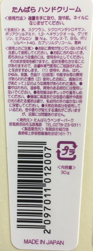 ●【ハンドクリーム1個】たんばらハンドクリーム30g 1本入り