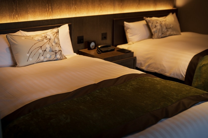 当館のハーヴェスト客室、VIALA客室の洋室ベッド部分にて使用中です。