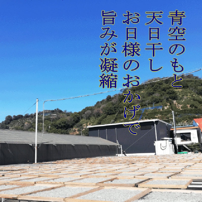 その日採れた新鮮なしらすを厚釜で釜茹でし、3~4時間じっくりと時間をかけて天日干ししております。機械乾燥とは旨みが全く違ううえ、太陽光による殺菌効果があるのが特徴です。 -