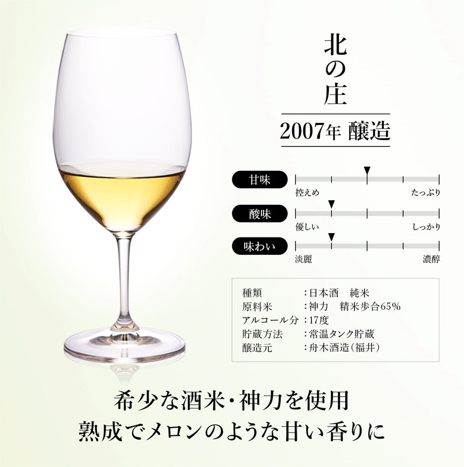 濃醇で旨口の長期熟成酒を目指して、甘口に仕上げた純米酒です。 狙い通り熟成し、オリエンタルナクミンやナツメグのようなスパイシーな香り、熟した洋ナシのような甘い香りが、渾然一体となり華やかに広がります。醸造元:南部酒造場 (創業1901年 福井県大野市)