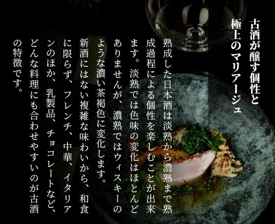 長期熟成によって生まれる深い味わいは新酒のそれとは全く異なり、お酒好きの方を唸らせるばかりか、