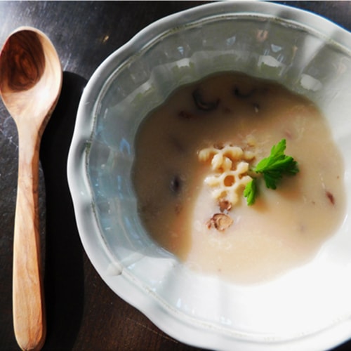 冷めても美味しく、甘みのある山形のブランド米「つや姫」の発芽米を使用し、GABA(ギャバ)が含まれているのも魅力です。厳選したデュラム小麦のセモリナと合わせ、本格的なイタリア製のパスタマシーンでオリジナルの「雪の結晶」に成形しました。 -