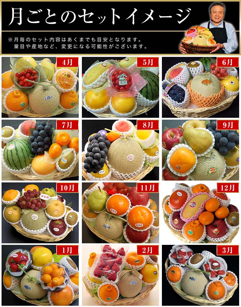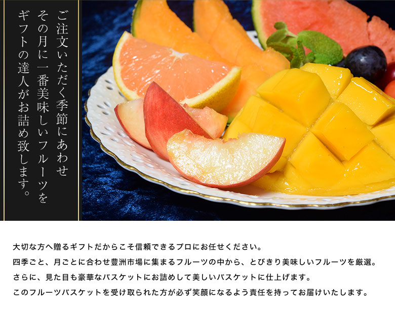 ご注文いただく季節にあわせその月に一番美味しいフルーツをギフトの達人がお詰め致します。 -