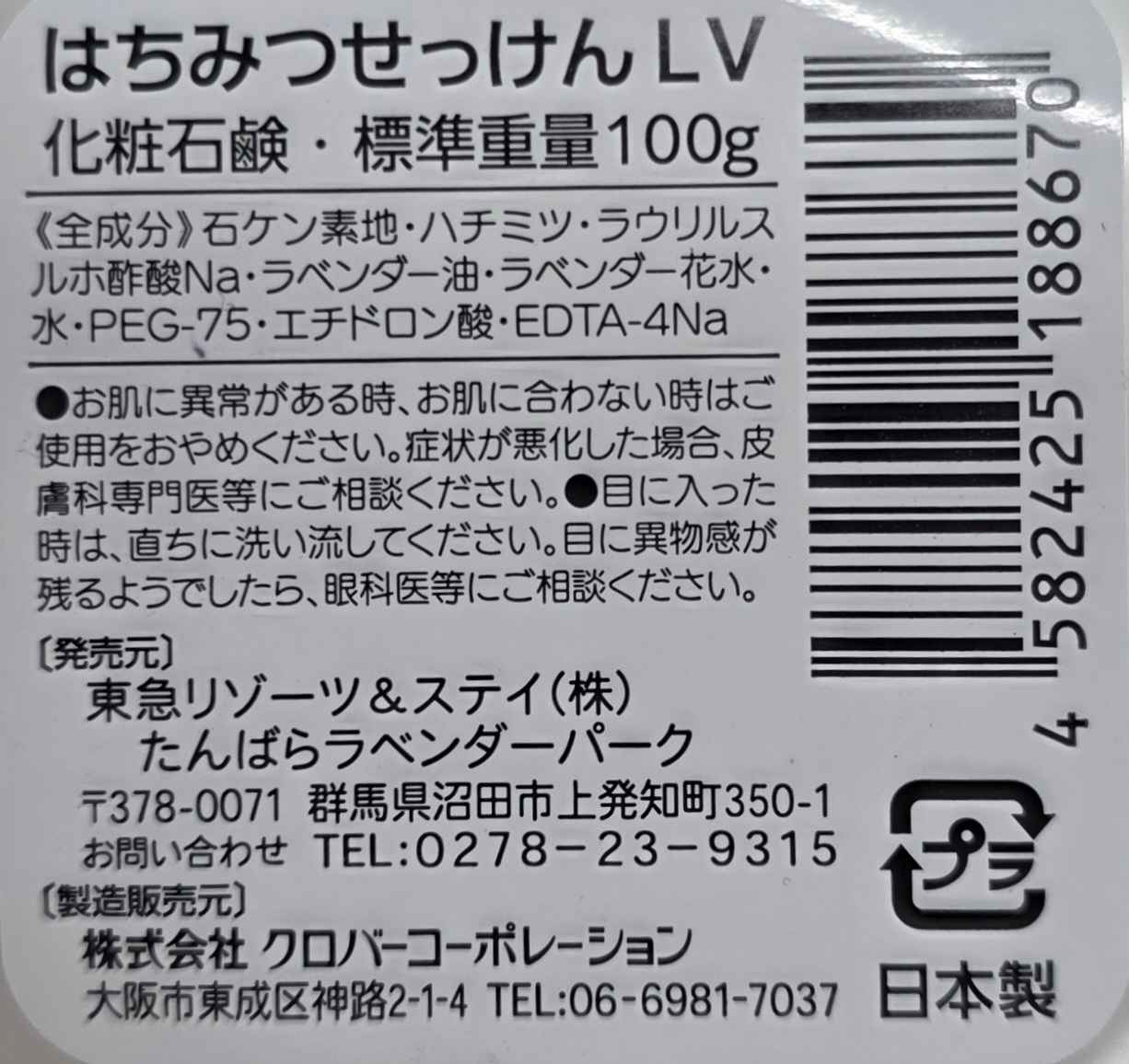 玉原産ラベンダーウォーター、ラベンダーエッセンシャルオイル、ラベンダーはちみつを配合した石鹸