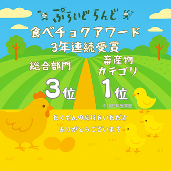 【飼育方法】 自然農法の先人である趙漢珪(チョウ ハンギョ)先生の教えを基に古来の自然養鶏、更に、生体エネルギー研究所の佐藤政二先生の教えを取り入れ、内容機能を強化しています。ヒナの時に玄米・笹の葉のみを与える事で消化器官の長さを一般鶏の約2倍近くまで長くし、消化吸収能力を高め、体質改善・潜在能力・新陳代謝・免疫力等の能力を引き出しながら飼育をしています。 -